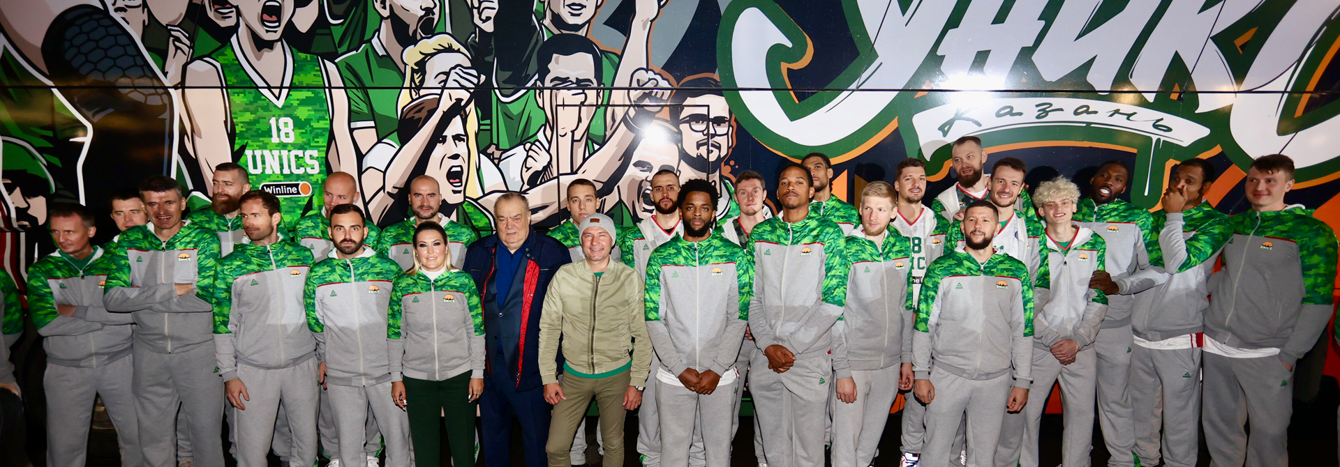 Баскетболисты и руководство клуба подъехали к сцене на автобусе. Главное транспортное средство УНИКСа получило новую жизнь перед стартом сезона: клубные цвета и яркое художественное оформление в стиле уличного граффити объединили болельщиков, игроков и партнера нашей команды.