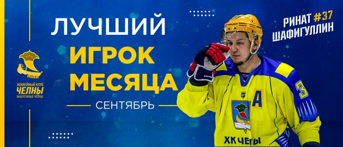 По результатам голосования защитник Ринат Шафигуллин опережает нападающего Никиту Савельева и вратаря Александра Костева и становится лучшим игроком ХК «Челны» в сентябре