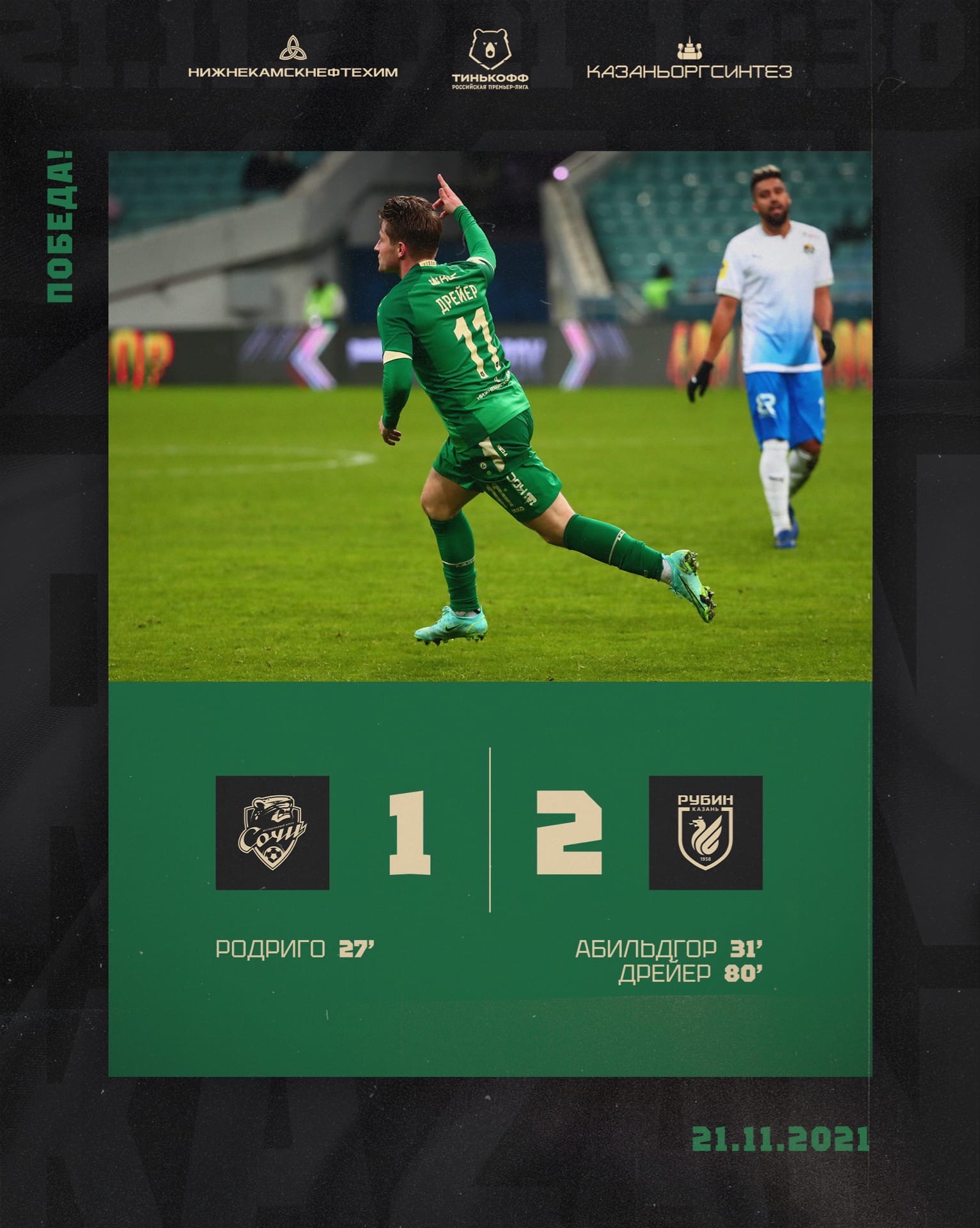 В матче 15-го тура РПЛ казанский «Рубин» обыграл «Сочи». Игра прошла на стадионе «Фишт».