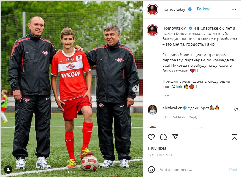 Первый новичок казанского «Рубина» в это межсезонье Александр Ломовицкий, обратился к болельщикам своей бывшей команды.«Я в «Спартаке» с восьми лет и всегда болел только за один клуб. Выходить на поле в майке с ромбиком — это мечта, гордость, кайф. Спасибо болельщикам, тренерам, персоналу, партнерам по команде за все! Никогда не забуду нашу красно-белую семью. Пришло время сделать следующий шаг», — написал у себя в Instagram Ломовицкий.