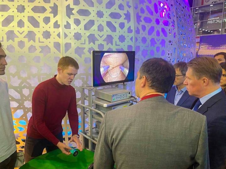 Стенд посетил министр здравоохранения России Михаил Мурашко, экскурсию по экспозиции для него провел министр здравоохранения РТ Марсель Миннуллин.