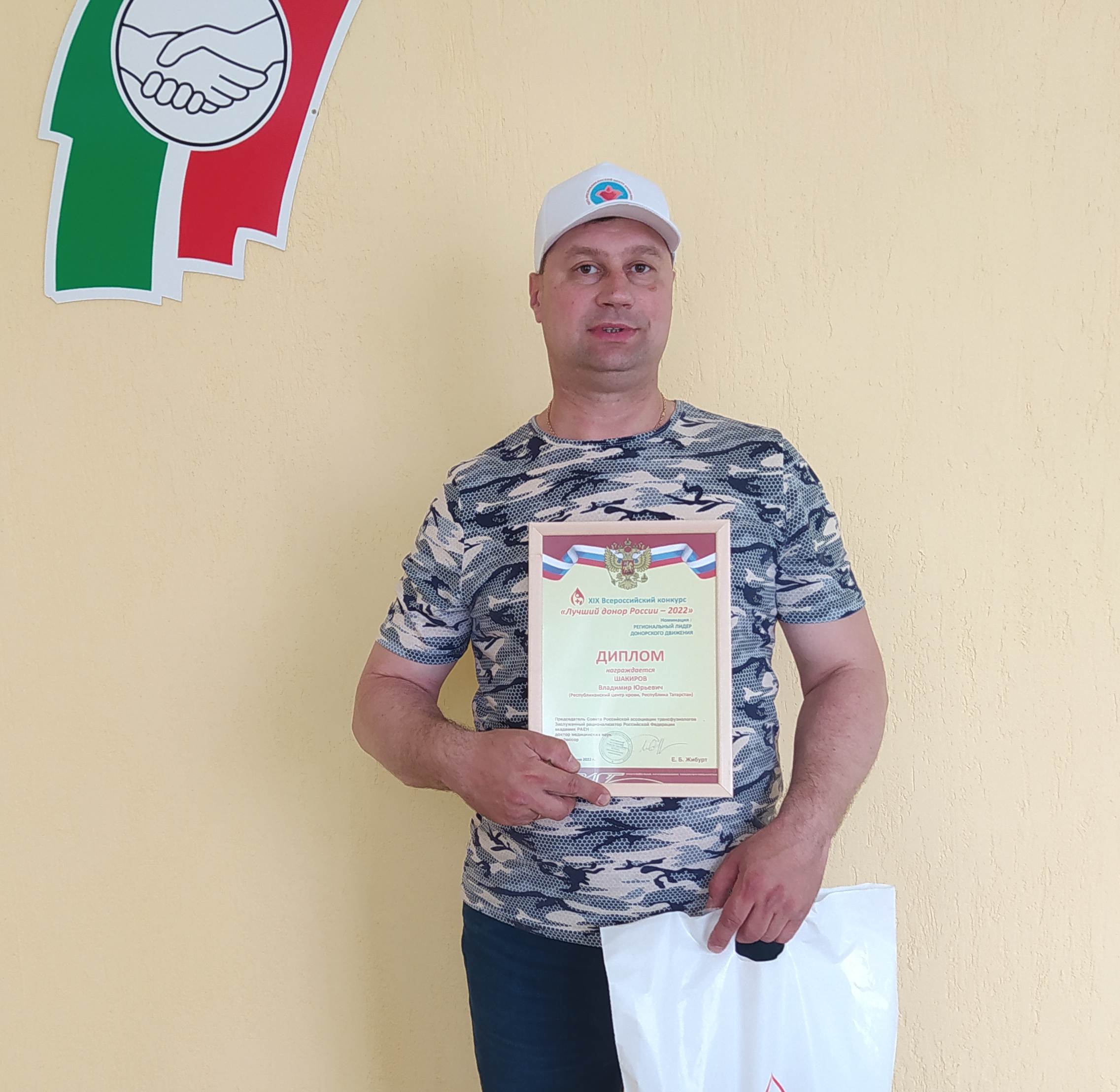 27 июня при последней донации главный врач Набережночелнинского центра крови Петр Куркин, заместитель главного врача по медицинской части Надежда Давлиева и главная медсестра Золфия Гурьянова в торжественной обстановке поздравили Владимира Шакирова с победой в конкурсе «Лучший донор России-2022» и вручили ему диплом, а так же памятные сувениры. Специалисты городского центра поблагодарили его за щедрое сердце, пропаганду добровольного донорства крови и истинное призвание помогать тем, кто нуждается в переливание крови.