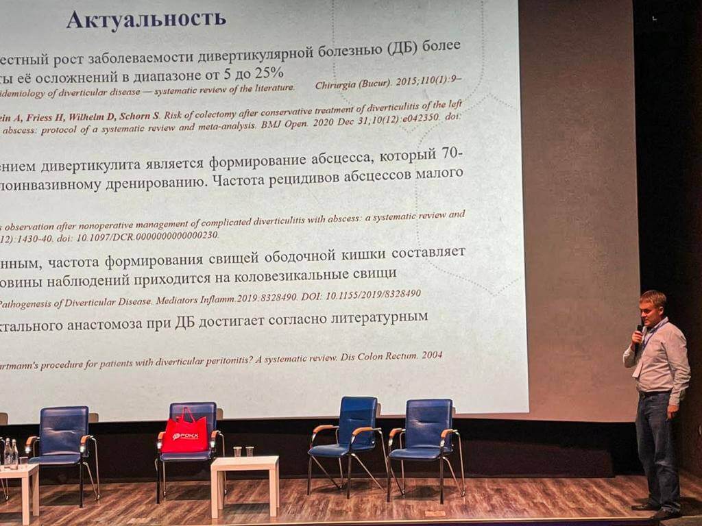Колопроктолог Раис Рафисович Шакиров выступил с докладом «К вопросу о первичном анастомозе при коловезикальных свищах и абсцессах дивертикулярного происхождения» на XIII Международной конференции «Российская школа колоре