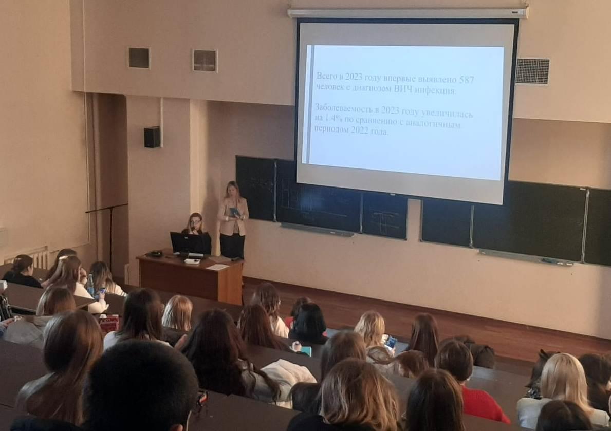 В Международный день борьбы со СПИДом – 1 декабря 2023 года - в нашем университете состоялась лекция-беседа с врачом-инфекционистом Миляушой Мисляховной Давлетшиной, в которой приняли участие студенты первого курса.