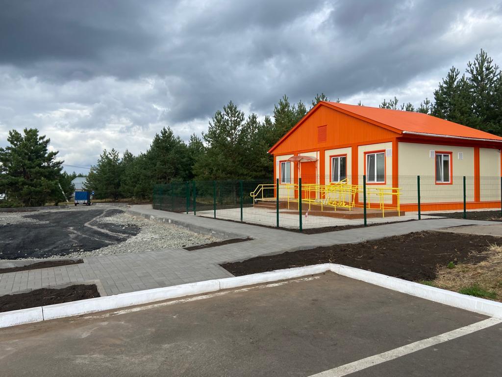 На данный момент завершены строительно-монтажные работы, выполнена внутренняя отделка помещений, поставлено новое медицинское оборудование и мебель. Прямо сейчас проводятся работы по благоустройству прилегающей территории.