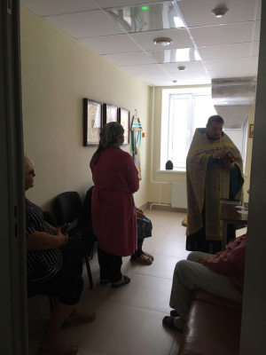 Богослужение совершил настоятель помощник руководителя епархиального отдела по больничному служению иерей Владислав Яковлев. За богослужением молились пациенты и сотрудники медицинского учреждения.