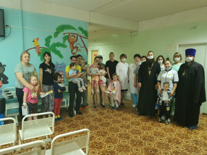 Настоятель храма Казанской иконы Божией Матери протоиерей Андрей Зиньков и настоятель молитвенного дома в честь прп. Сергия Радонежского иерей Тимофей Маташов пожелали ребятам скорейшего выздоровления, а медработникам выразили слова благодарности за их самоотверженный труд, любовь и заботу.